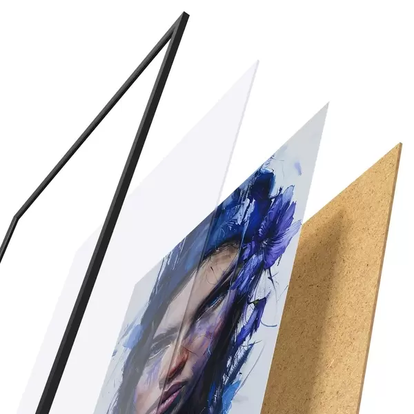 Le poster se compose d'un cadre, d'un plexiglas, d'une image imprimée et d'un support en aggloméré. Le poster peut être immédiatement accroché au mur grâce aux fixations au dos.