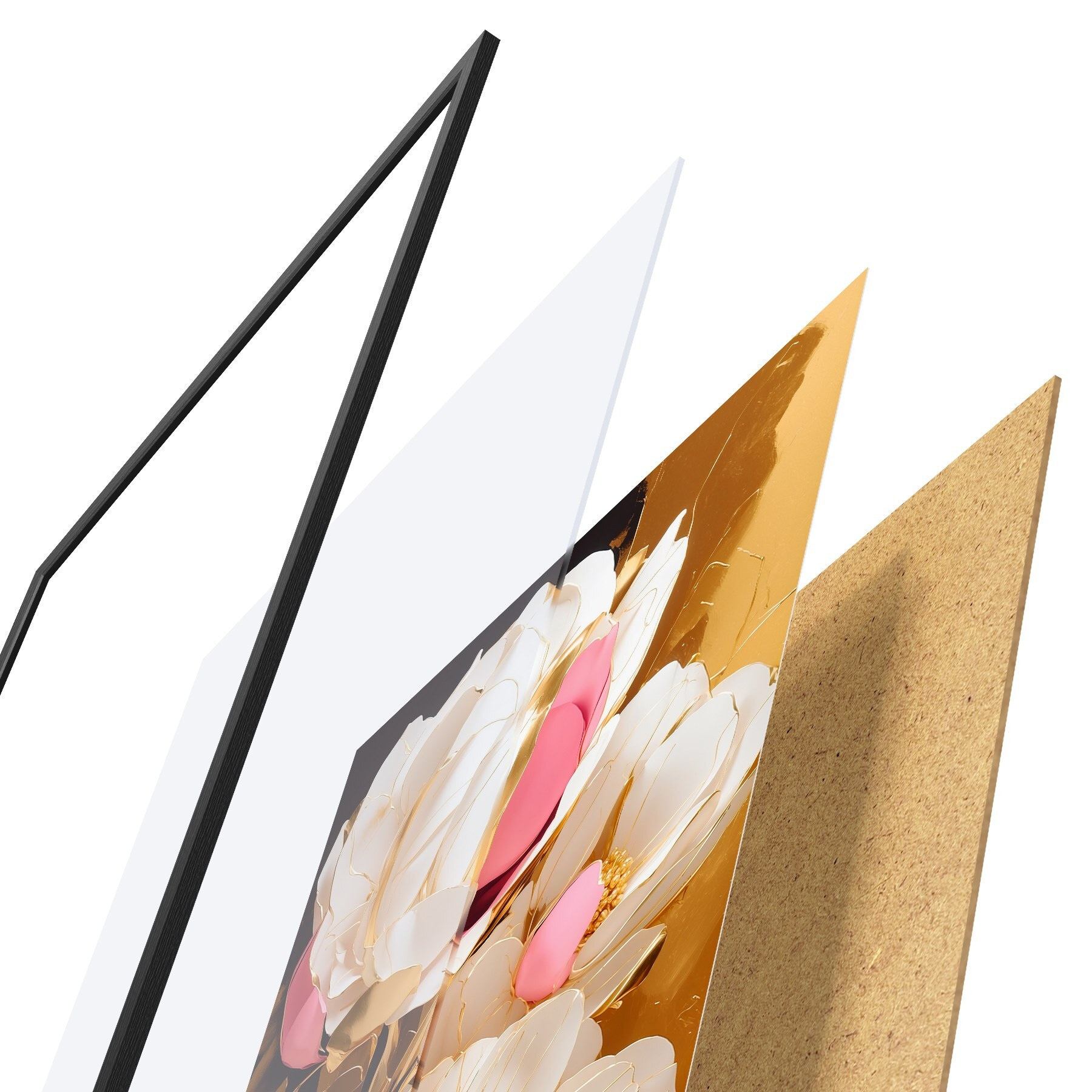 Le poster se compose d'un cadre, d'un plexiglas, d'une image imprimée et d'un support en aggloméré. Le poster peut être immédiatement accroché au mur grâce aux fixations au dos.