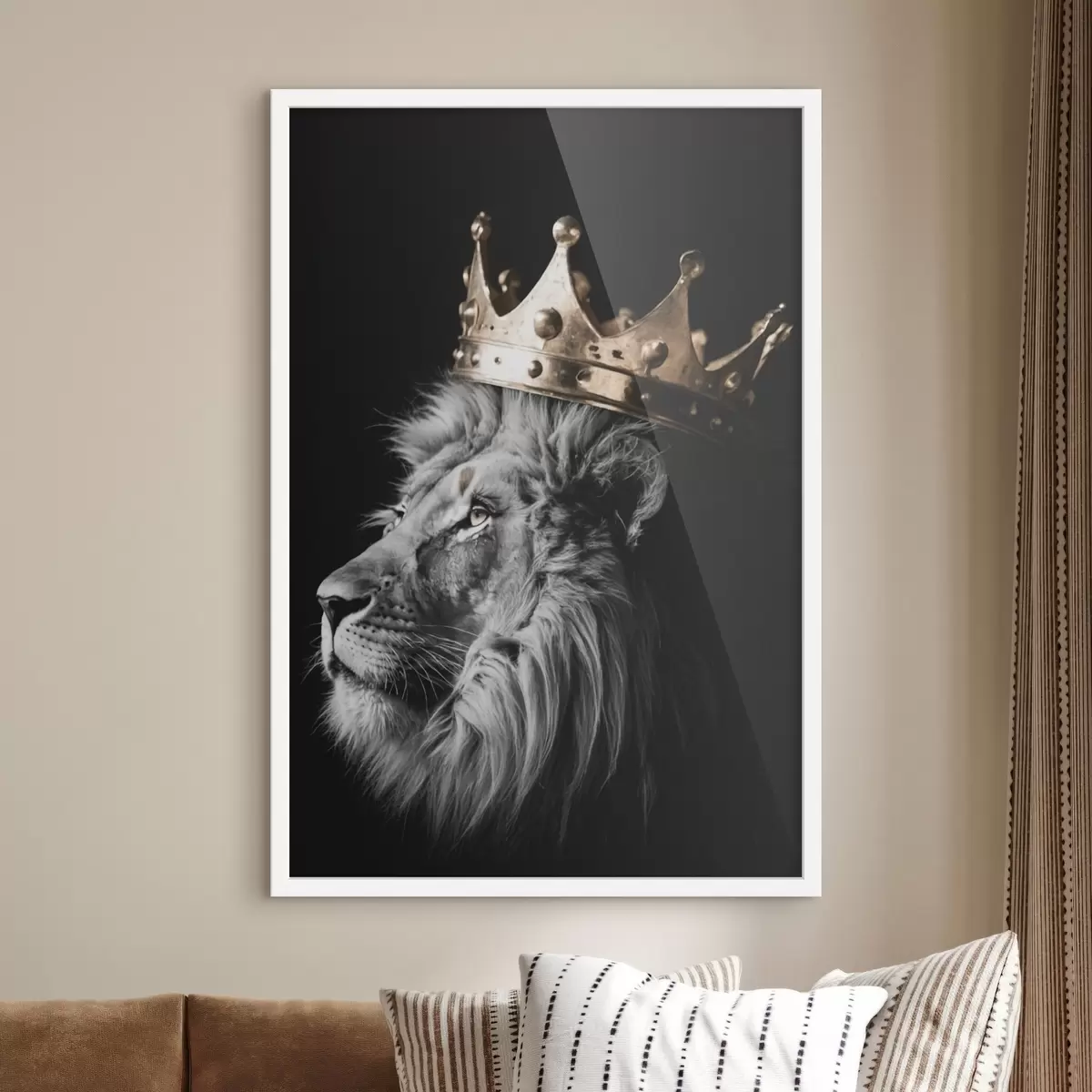 Affiche Lion avec couronne sur fond sombre Non f42096