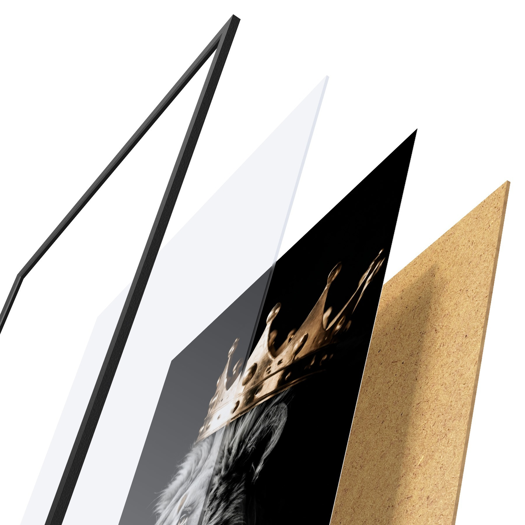 Le poster se compose d'un cadre, d'un plexiglas, d'une image imprimée et d'un support en aggloméré. Le poster peut être immédiatement accroché au mur grâce aux fixations au dos.