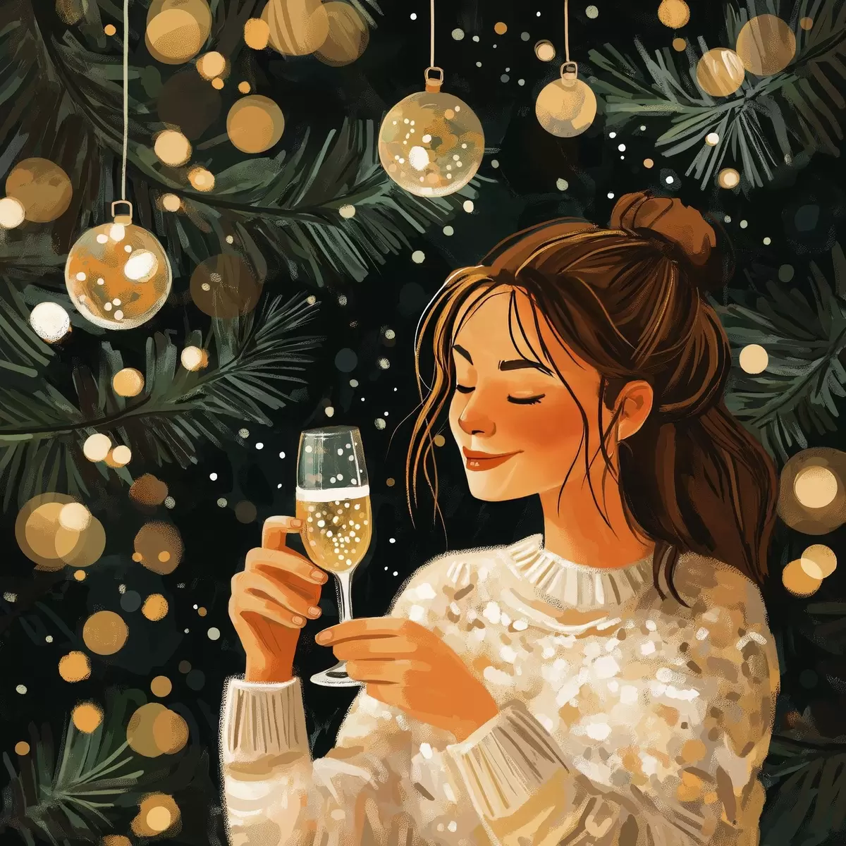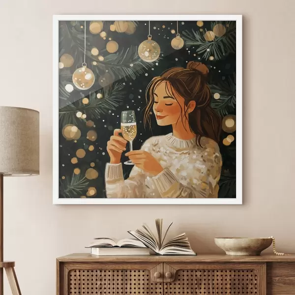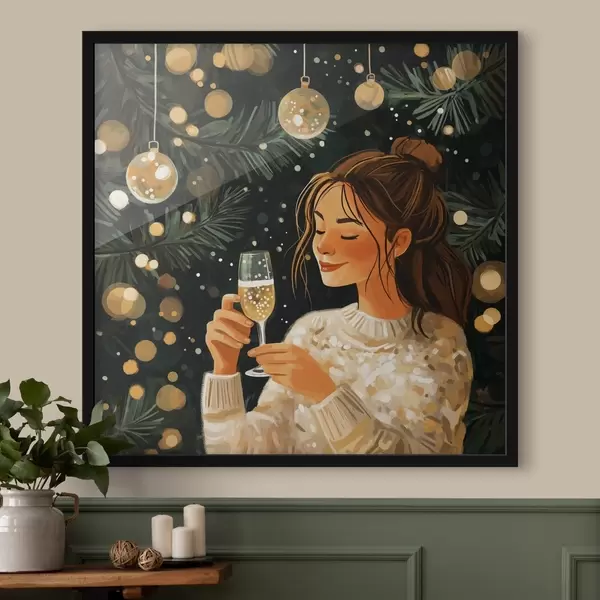 Affiche Une fille avec une coupe de champagne pour le réveillon du Nouvel An f42102