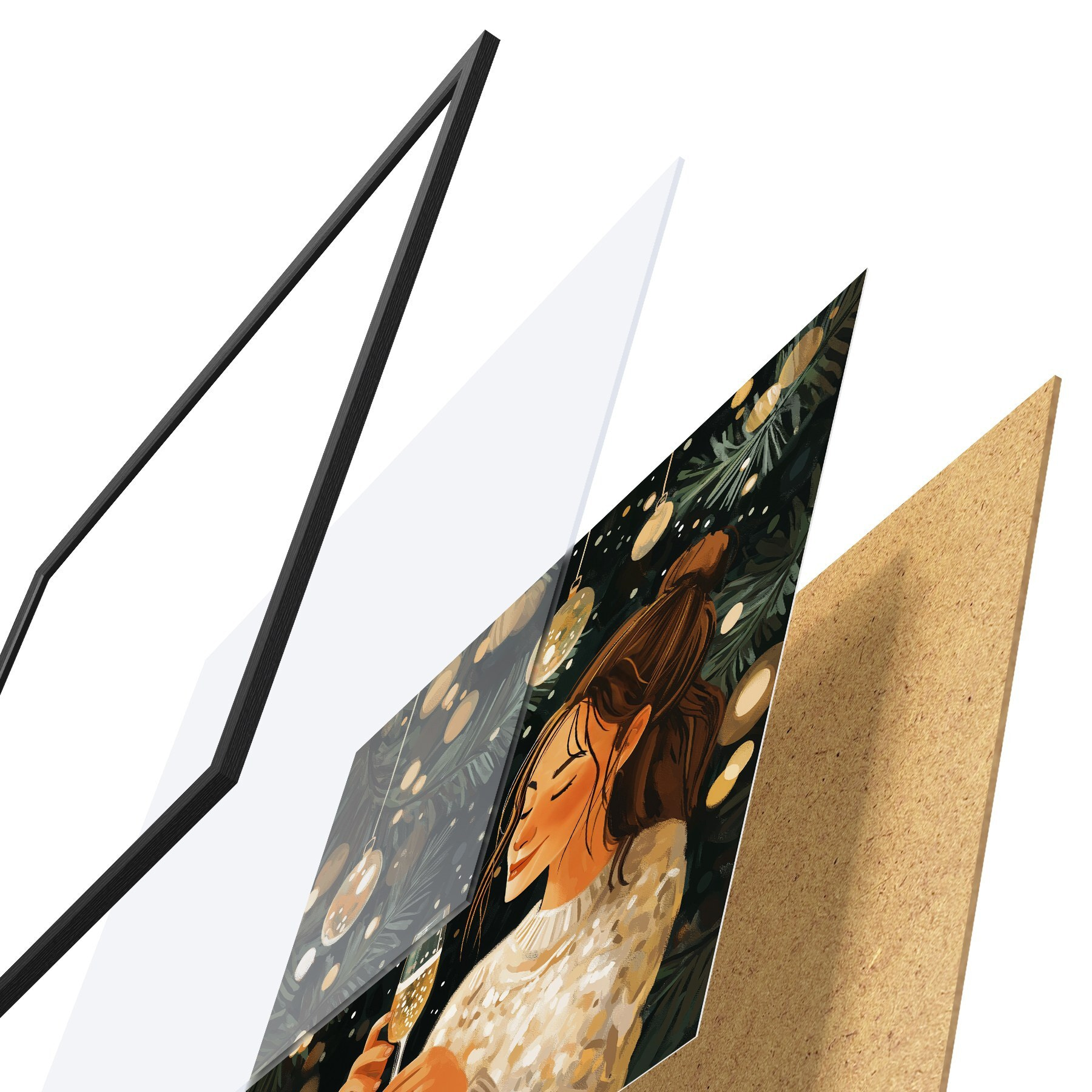 Le poster se compose d'un cadre, d'un plexiglas, d'une image imprimée et d'un support en aggloméré. Le poster peut être immédiatement accroché au mur grâce aux fixations au dos.