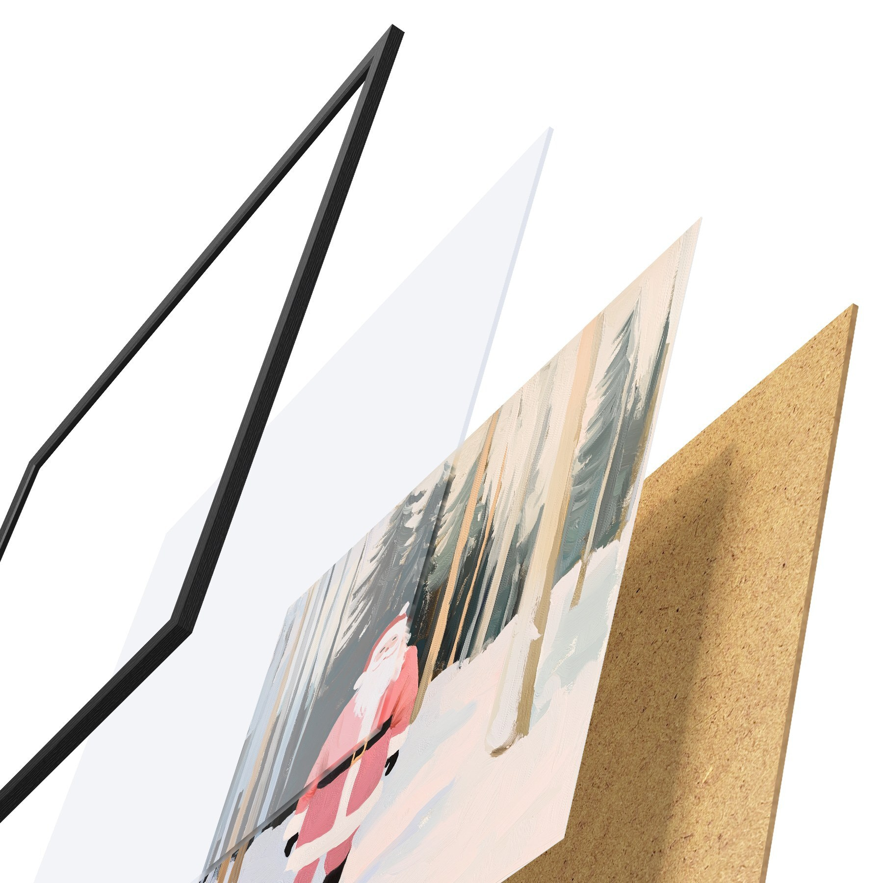 Le poster se compose d'un cadre, d'un plexiglas, d'une image imprimée et d'un support en aggloméré. Le poster peut être immédiatement accroché au mur grâce aux fixations au dos.