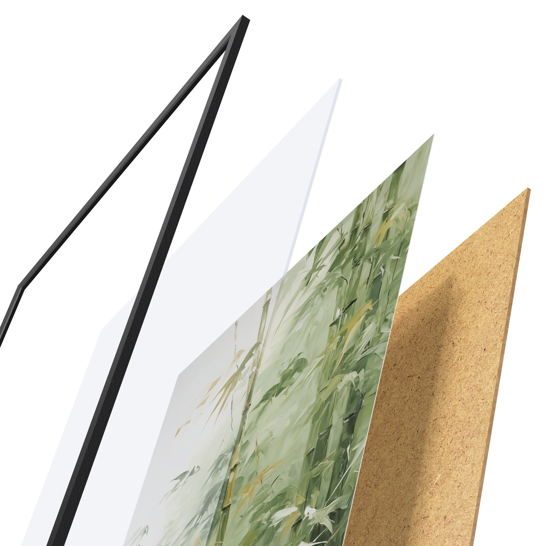Le poster se compose d'un cadre, d'un plexiglas, d'une image imprimée et d'un support en aggloméré. Le poster peut être immédiatement accroché au mur grâce aux fixations au dos.