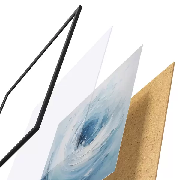 Le poster se compose d'un cadre, d'un plexiglas, d'une image imprimée et d'un support en aggloméré. Le poster peut être immédiatement accroché au mur grâce aux fixations au dos.
