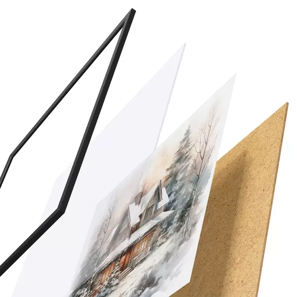 Le poster se compose d'un cadre, d'un plexiglas, d'une image imprimée et d'un support en aggloméré. Le poster peut être immédiatement accroché au mur grâce aux fixations au dos.