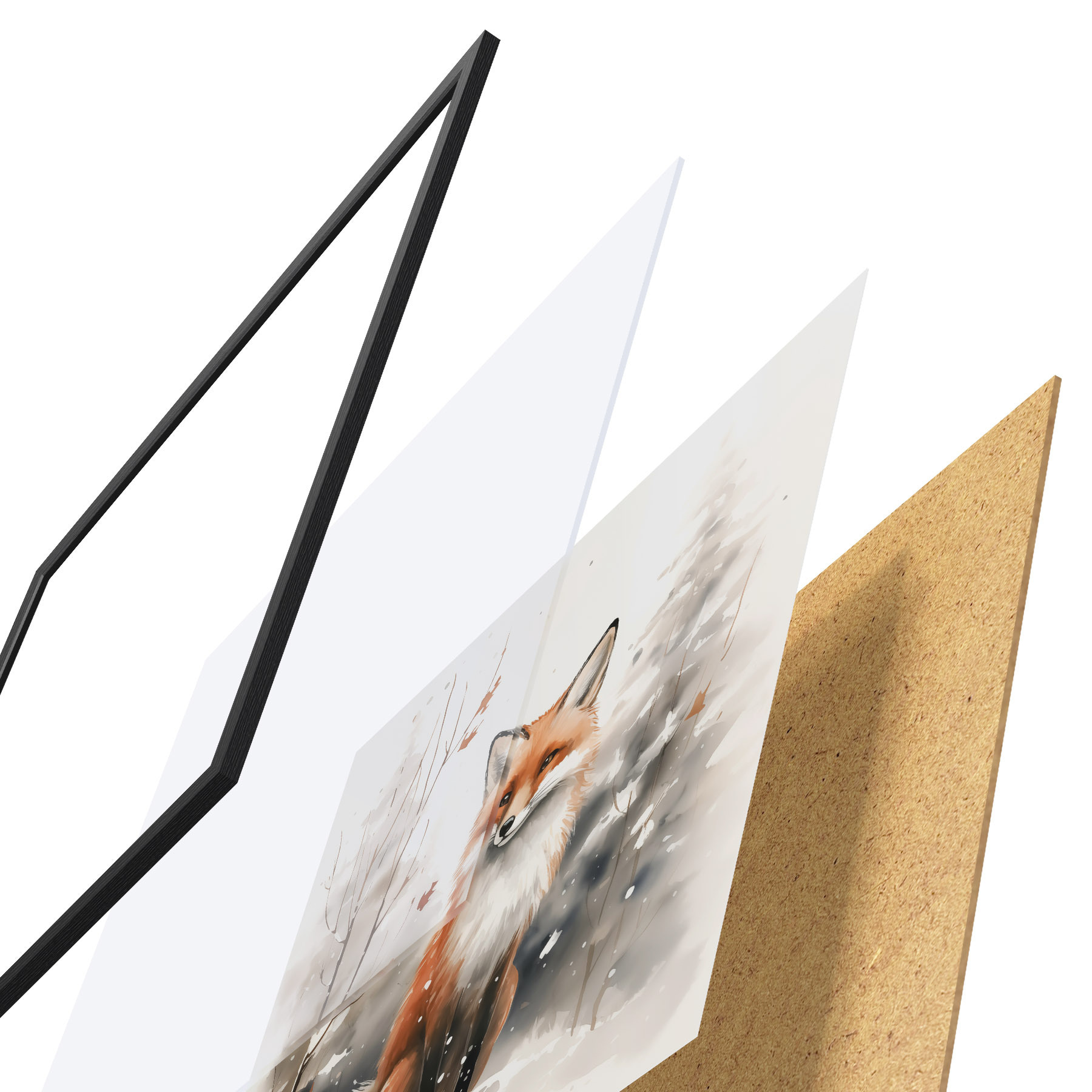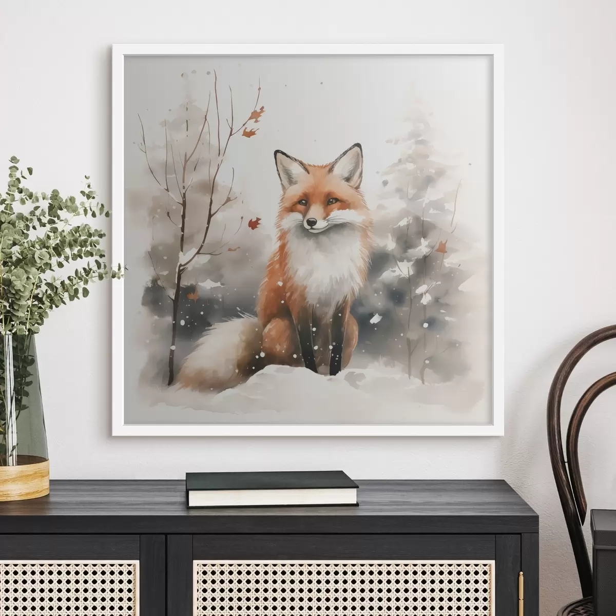 Affiche Renardeau dans une forêt enneigée imitation aquarelle Non f42146