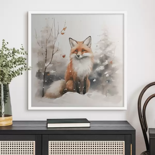 Affiche Renardeau dans une forêt enneigée imitation aquarelle f42146