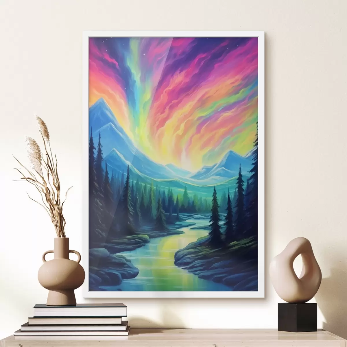 Affiche Aurore boréale sur un paysage de montagne Non f42150