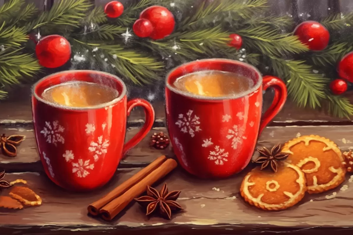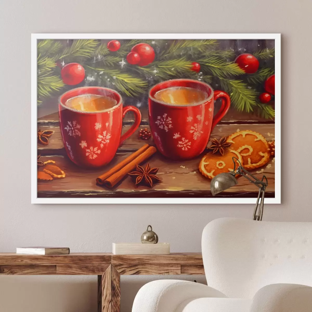Affiche Tasses de thé parmi les branches festives Non f42164