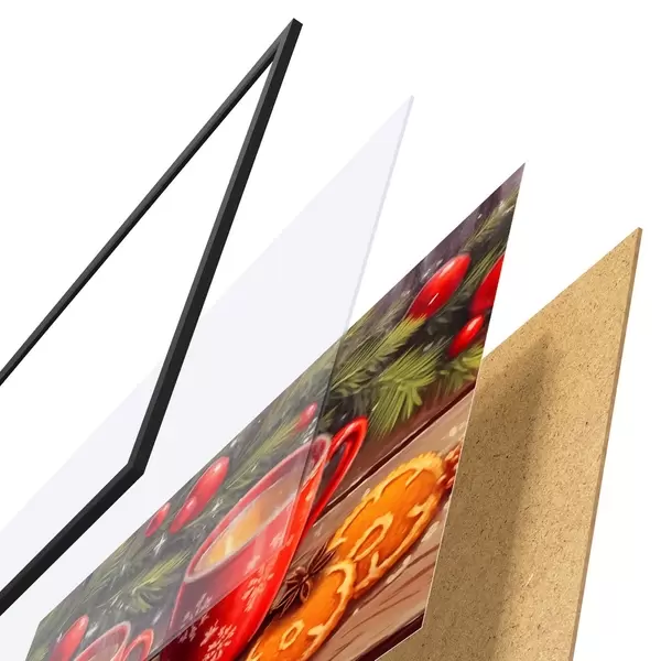 Le poster se compose d'un cadre, d'un plexiglas, d'une image imprimée et d'un support en aggloméré. Le poster peut être immédiatement accroché au mur grâce aux fixations au dos.