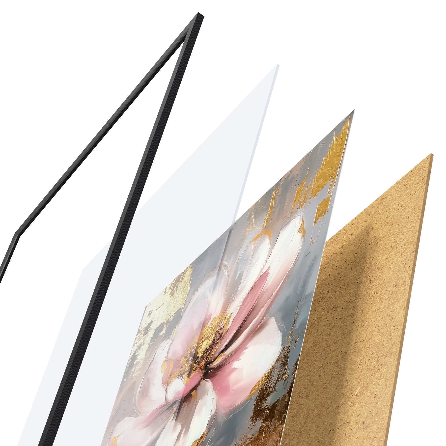 Le poster se compose d'un cadre, d'un plexiglas, d'une image imprimée et d'un support en aggloméré. Le poster peut être immédiatement accroché au mur grâce aux fixations au dos.