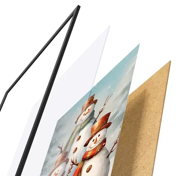 Le poster se compose d'un cadre, d'un plexiglas, d'une image imprimée et d'un support en aggloméré. Le poster peut être immédiatement accroché au mur grâce aux fixations au dos.