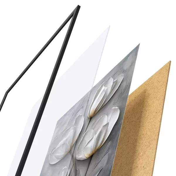 Le poster se compose d'un cadre, d'un plexiglas, d'une image imprimée et d'un support en aggloméré. Le poster peut être immédiatement accroché au mur grâce aux fixations au dos.
