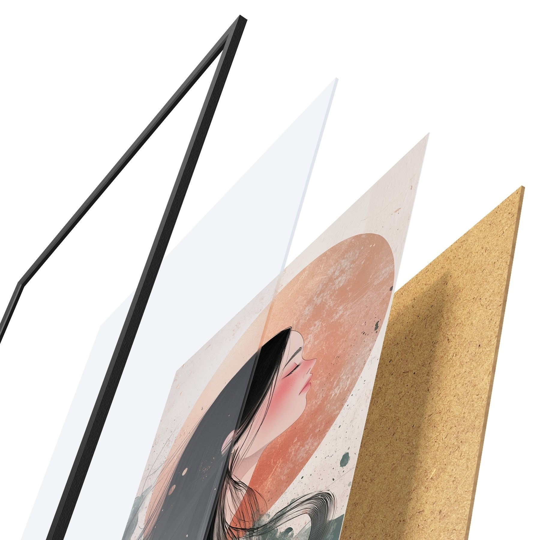 Le poster se compose d'un cadre, d'un plexiglas, d'une image imprimée et d'un support en aggloméré. Le poster peut être immédiatement accroché au mur grâce aux fixations au dos.