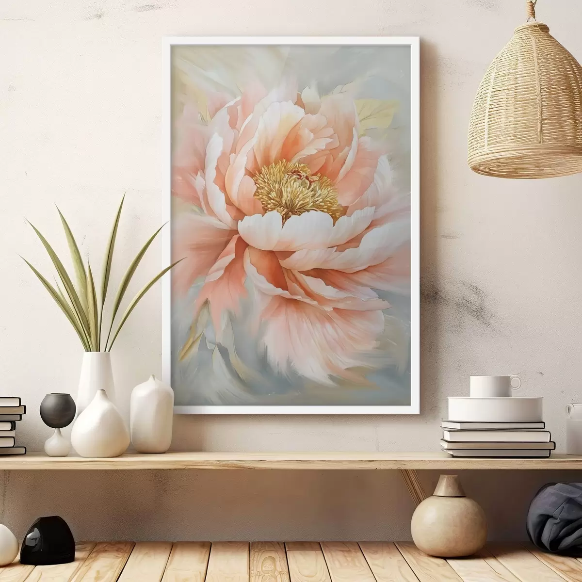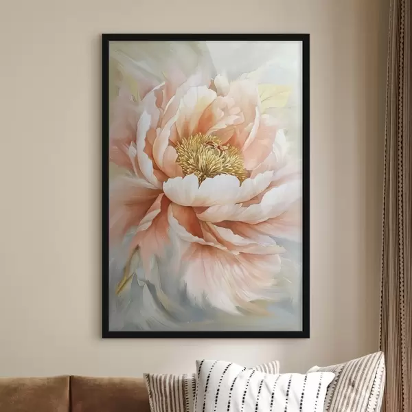 Affiche Fleur de pivoine à l'acrylique, couleurs roses, coups de pinceau f42199