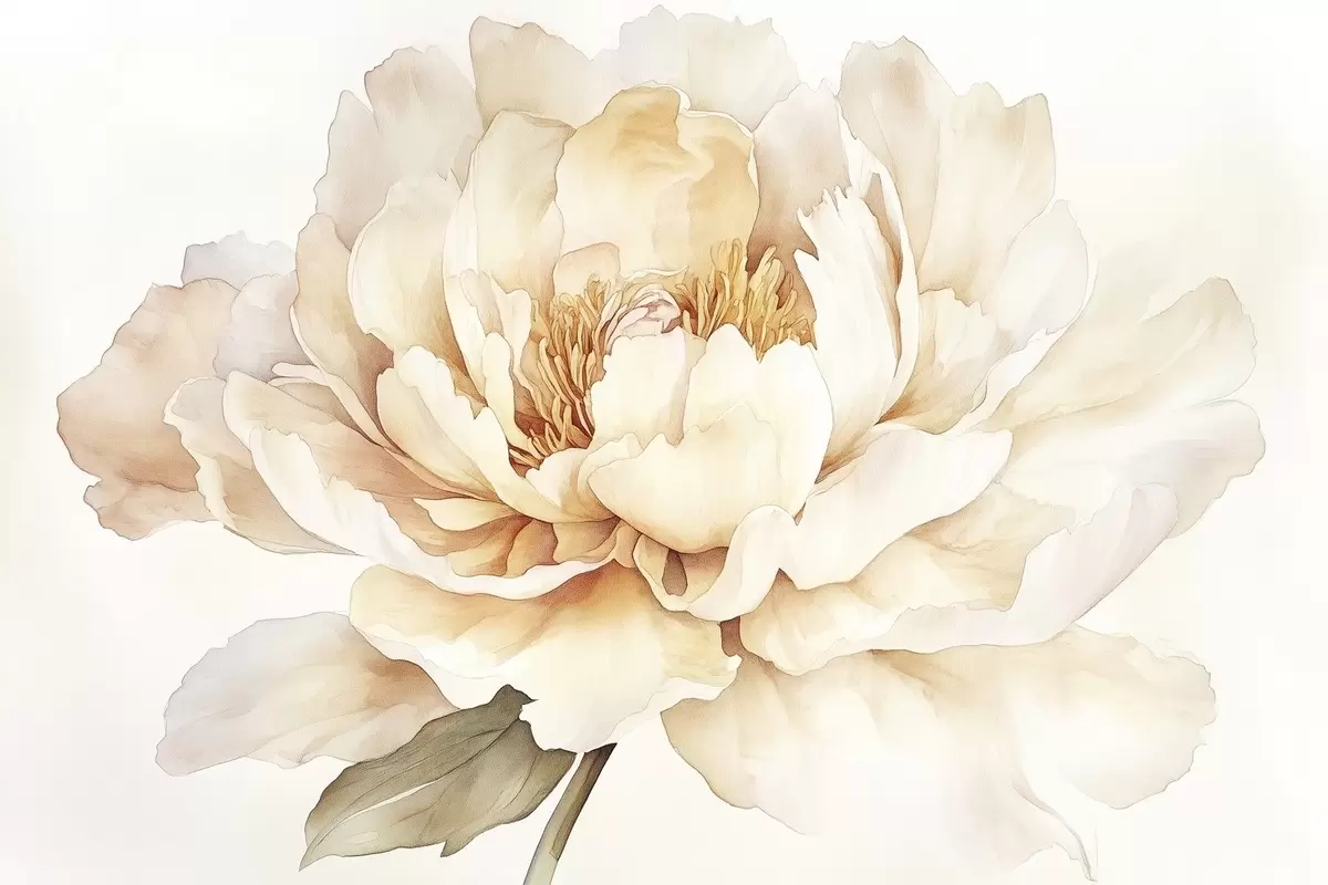 Affiche Belle fleur de pivoine, couleurs douces et crémeuses, style aquarelle Non f42201