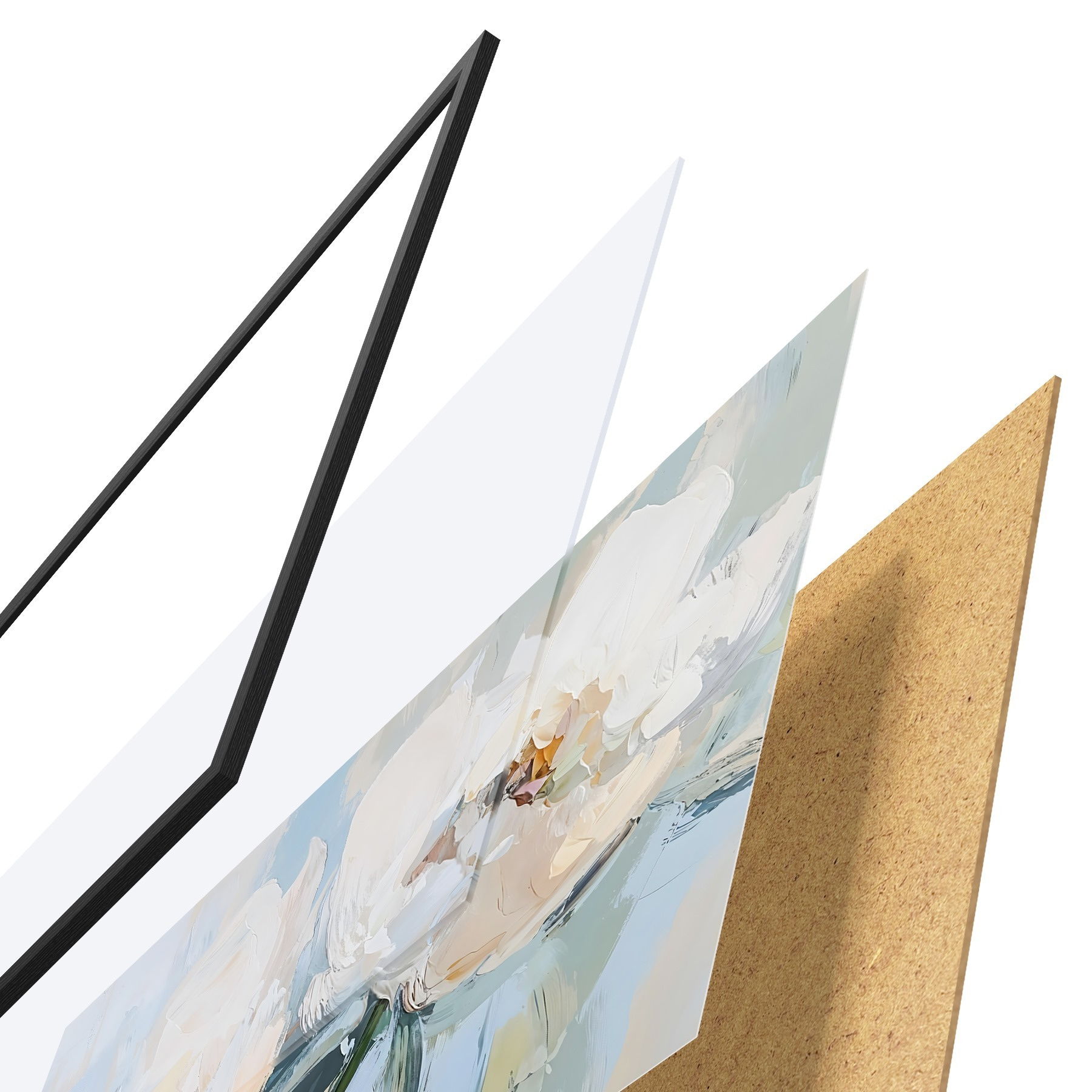 Affiche Peinture à l'huile abstraite minimaliste blanche imitant les pivoines sur un fond bleu doux Non f42226