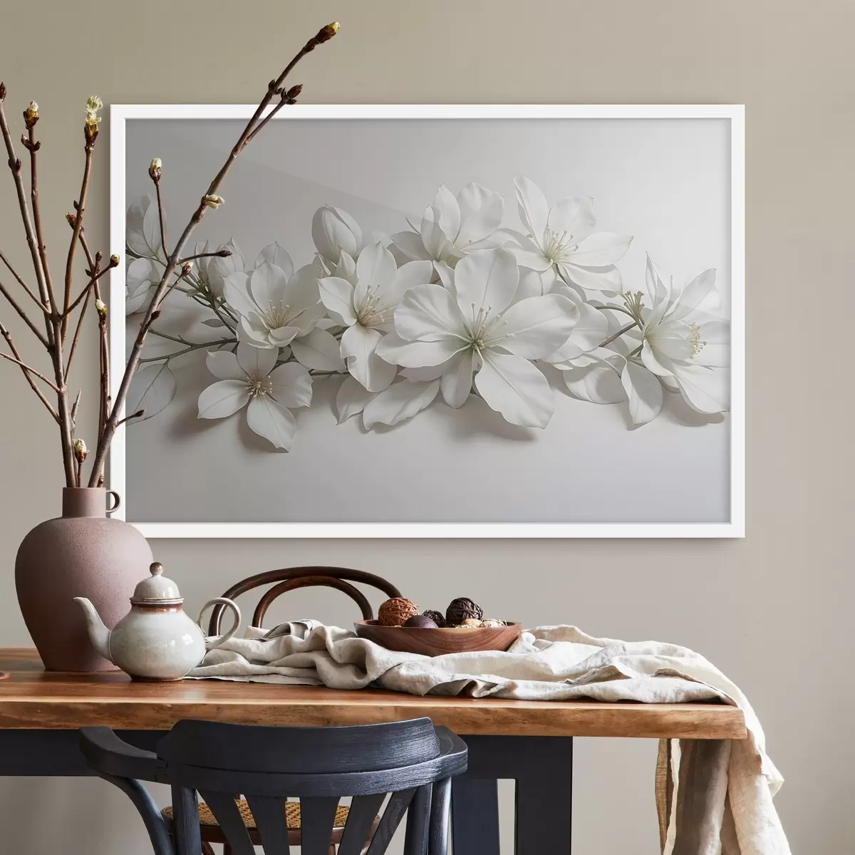 Affiche Fleurs de magnolia blanches et délicates sur fond clair Non f42230