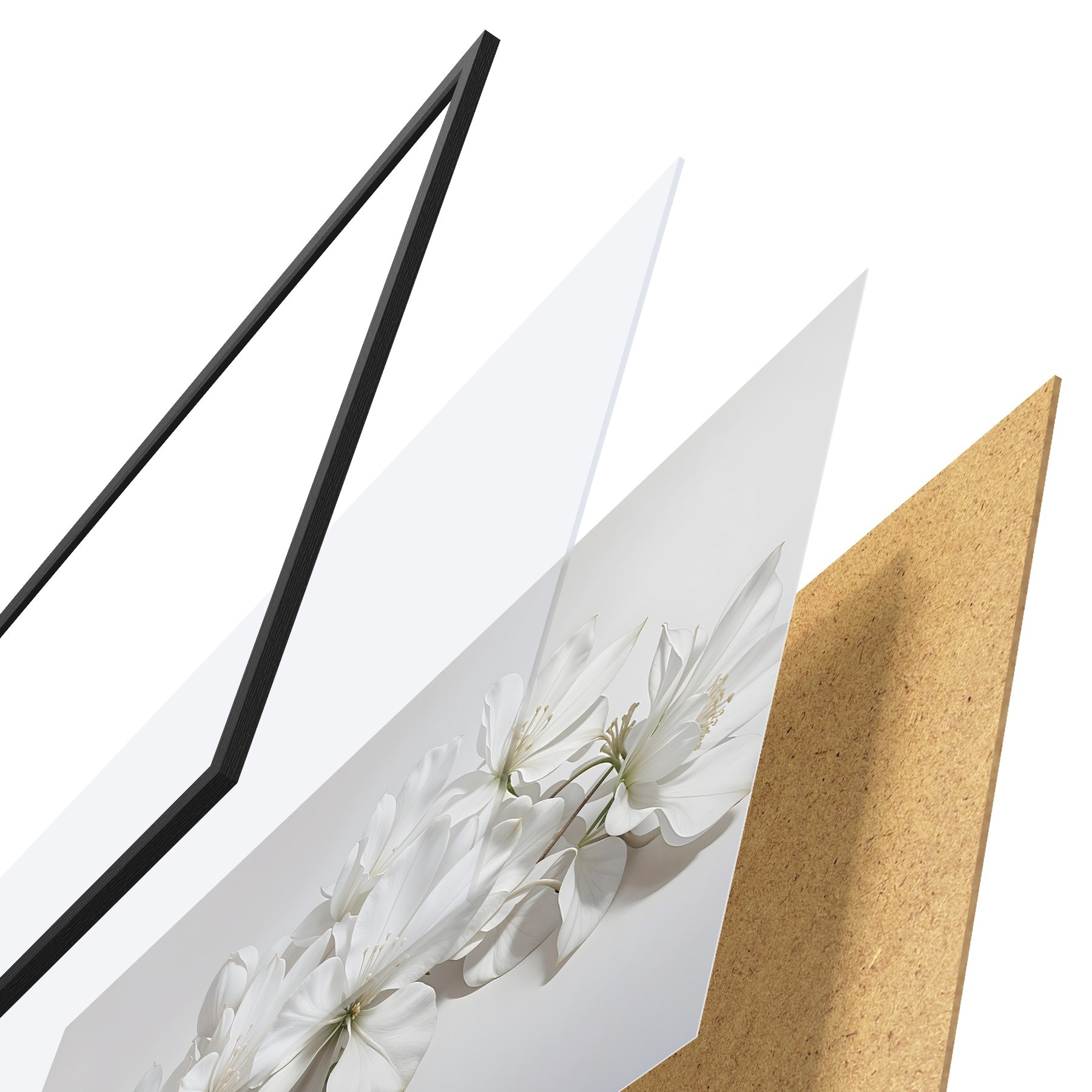 Le poster se compose d'un cadre, d'un plexiglas, d'une image imprimée et d'un support en aggloméré. Le poster peut être immédiatement accroché au mur grâce aux fixations au dos.