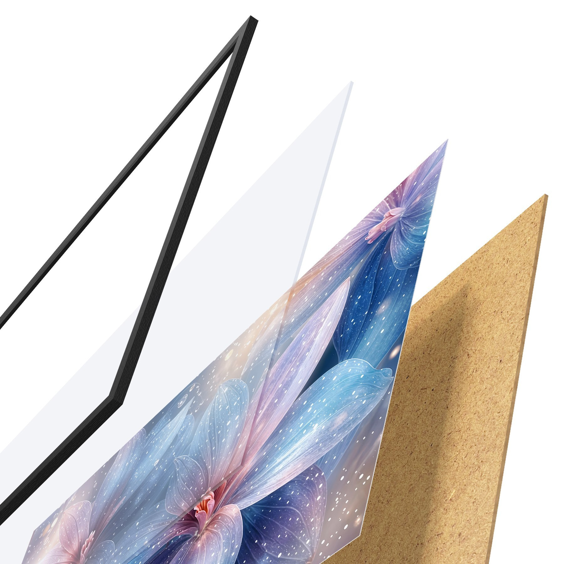 Affiche Fleurs vibrantes et éthérées avec des pétales pastel doux sur un fond étoilé de rêve Non f42231