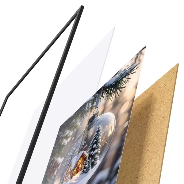 Le poster se compose d'un cadre, d'un plexiglas, d'une image imprimée et d'un support en aggloméré. Le poster peut être immédiatement accroché au mur grâce aux fixations au dos.