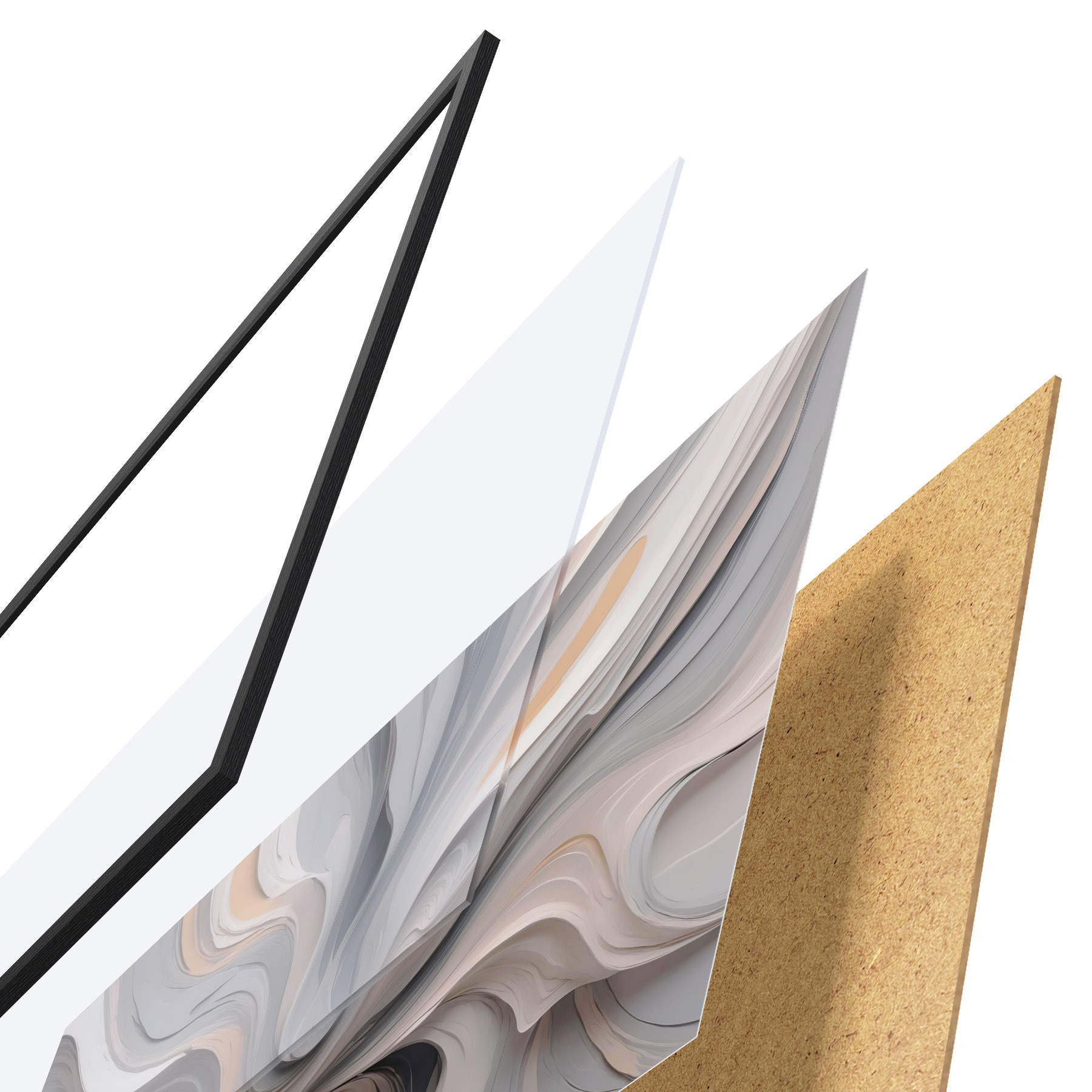 Le poster se compose d'un cadre, d'un plexiglas, d'une image imprimée et d'un support en aggloméré. Le poster peut être immédiatement accroché au mur grâce aux fixations au dos.
