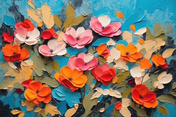Affiche Fleurs et feuilles sur fond bleu Non f42255