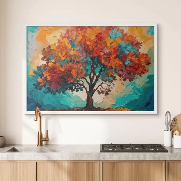 Affiche Arbre sur fond bleu-orange dans le style de la peinture à l'huile Non f42267