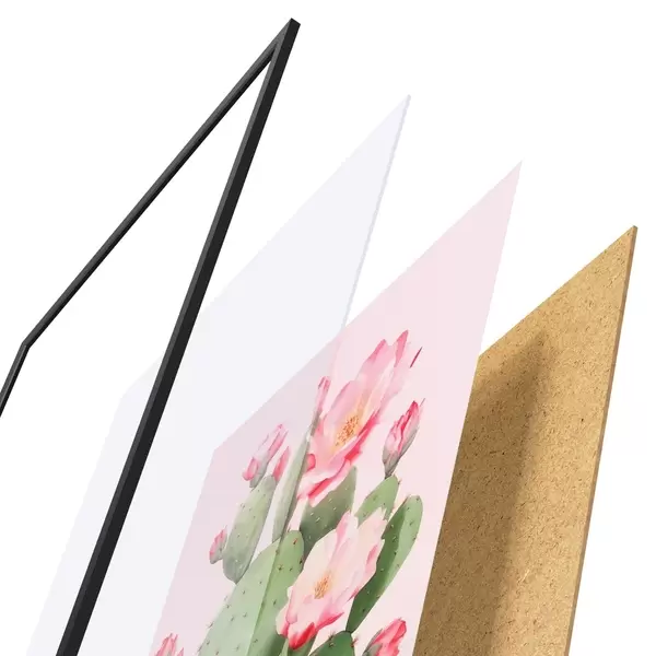 Le poster se compose d'un cadre, d'un plexiglas, d'une image imprimée et d'un support en aggloméré. Le poster peut être immédiatement accroché au mur grâce aux fixations au dos.
