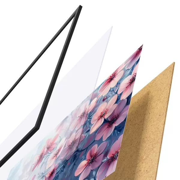 Le poster se compose d'un cadre, d'un plexiglas, d'une image imprimée et d'un support en aggloméré. Le poster peut être immédiatement accroché au mur grâce aux fixations au dos.