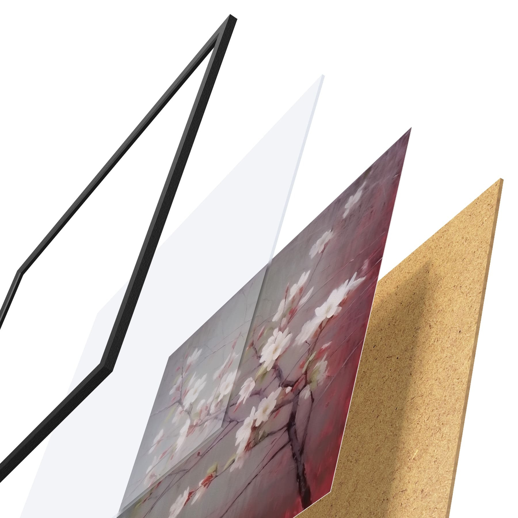 Le poster se compose d'un cadre, d'un plexiglas, d'une image imprimée et d'un support en aggloméré. Le poster peut être immédiatement accroché au mur grâce aux fixations au dos.