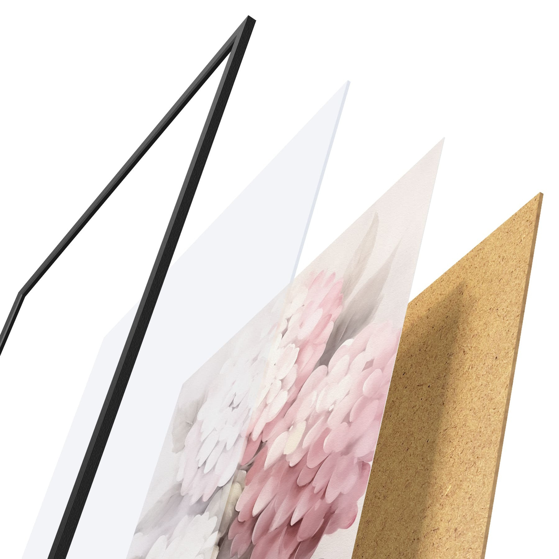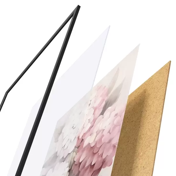Le poster se compose d'un cadre, d'un plexiglas, d'une image imprimée et d'un support en aggloméré. Le poster peut être immédiatement accroché au mur grâce aux fixations au dos.