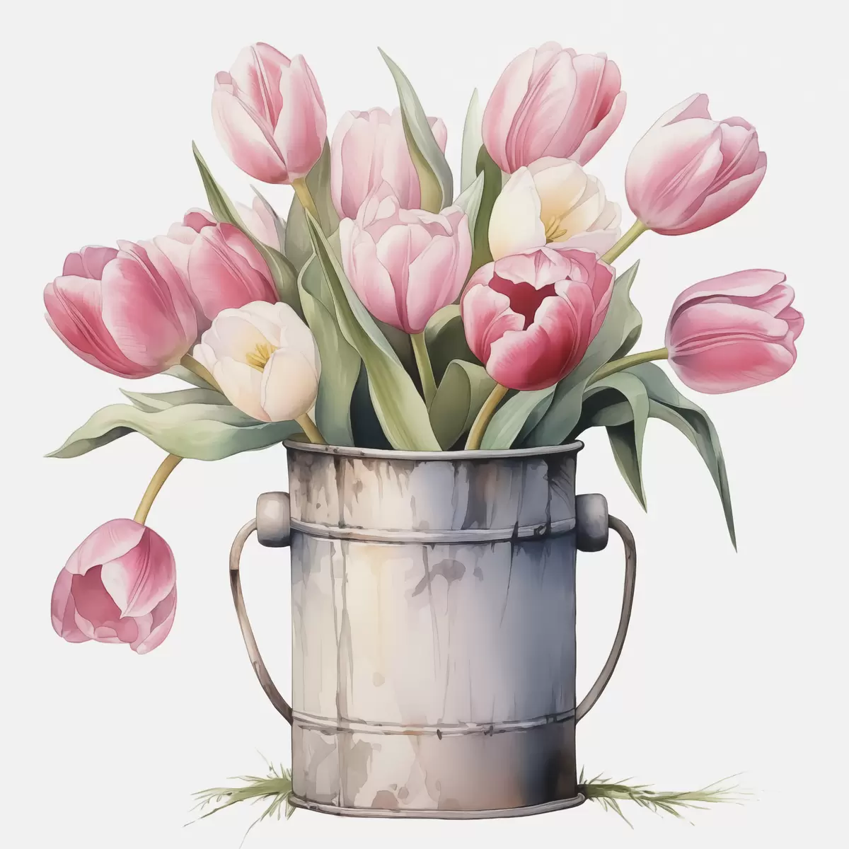 Affiche Bouquet de tulipes dans un seau imitation aquarelle f42353