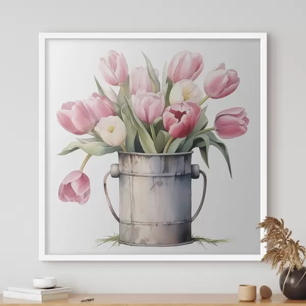 Affiche Bouquet de tulipes dans un seau imitation aquarelle Non f42353