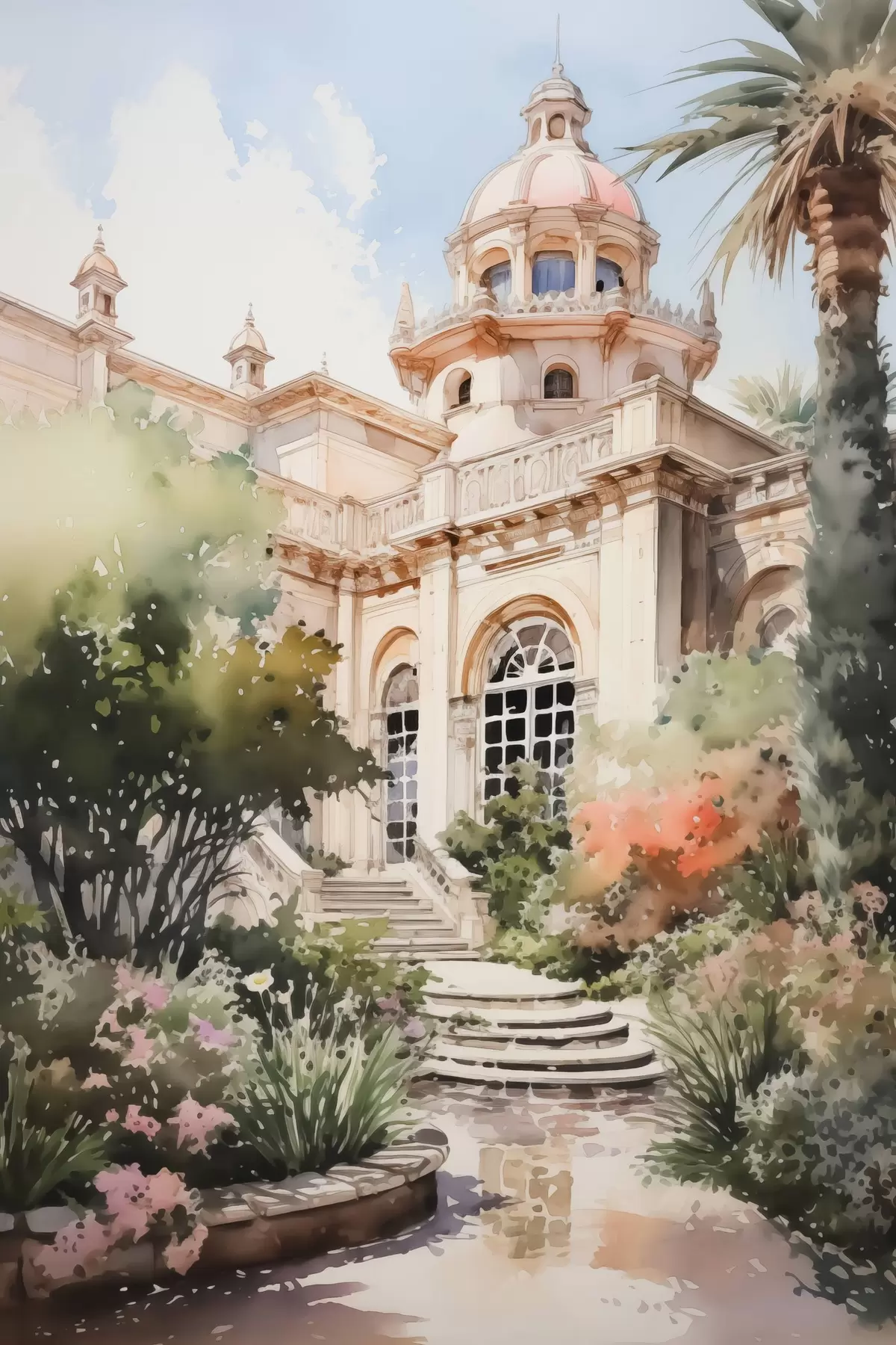 Affiche Jardin près de la maison imitation aquarelle Non f42362
