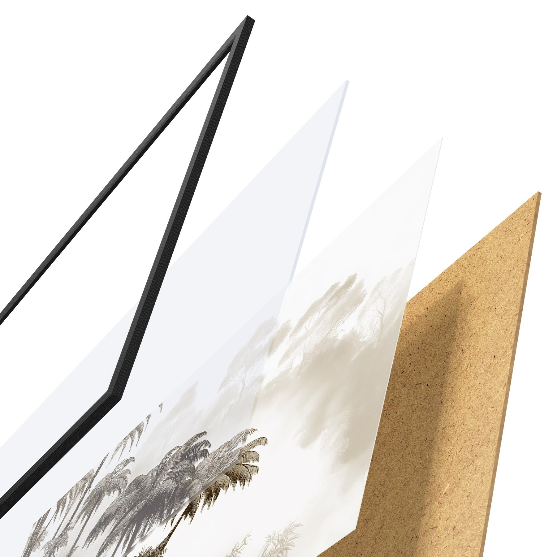 Affiche Forêt de jungle dans la brume, palmiers, nature, couleurs beiges f42372