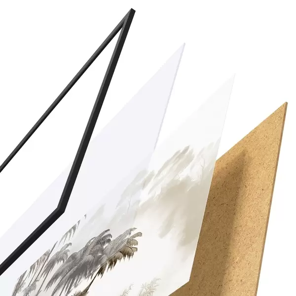Le poster se compose d'un cadre, d'un plexiglas, d'une image imprimée et d'un support en aggloméré. Le poster peut être immédiatement accroché au mur grâce aux fixations au dos.