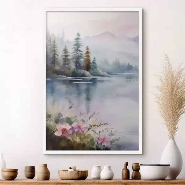 Affiche Forêt dans le brouillard sur fond de lac f42384