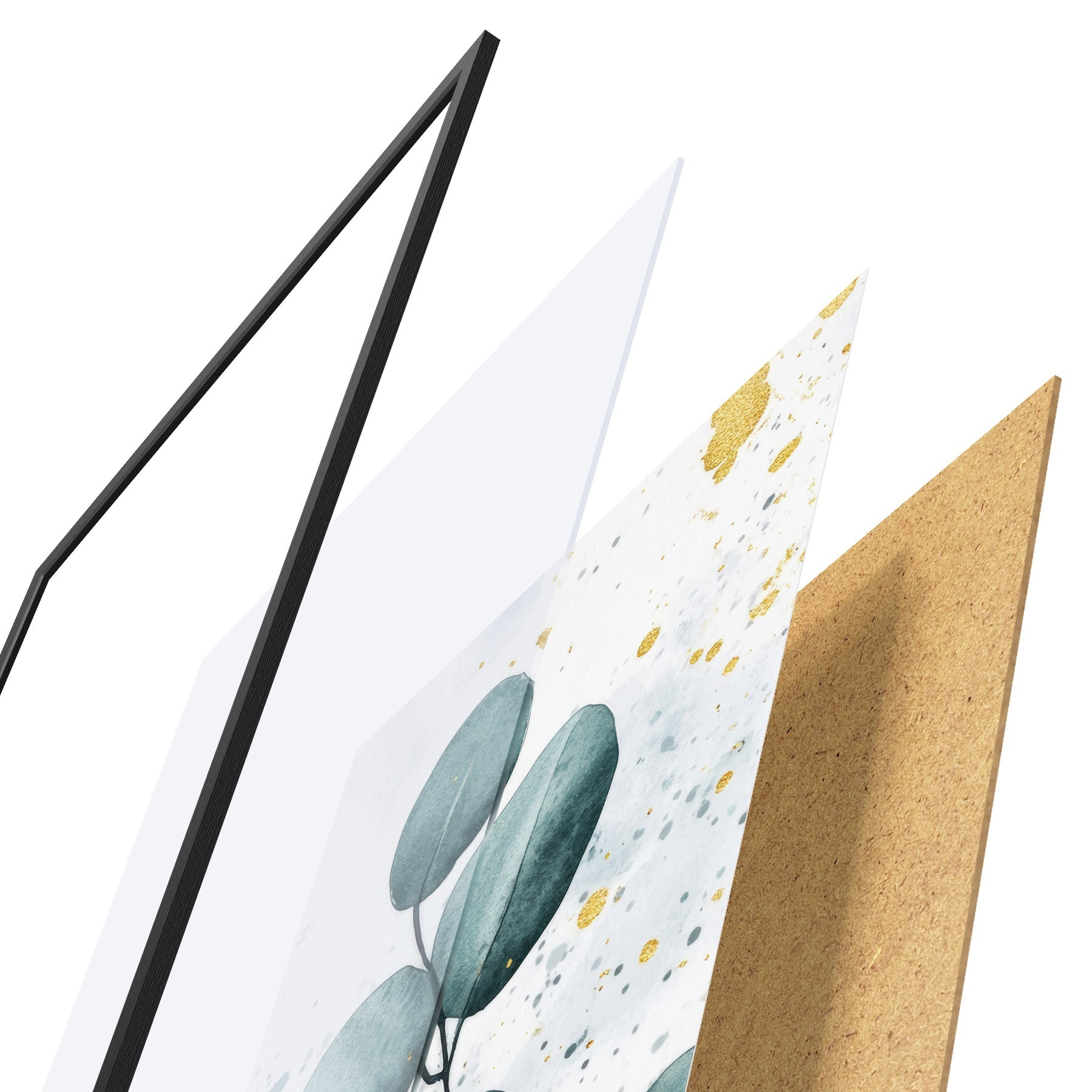 Le poster se compose d'un cadre, d'un plexiglas, d'une image imprimée et d'un support en aggloméré. Le poster peut être immédiatement accroché au mur grâce aux fixations au dos.