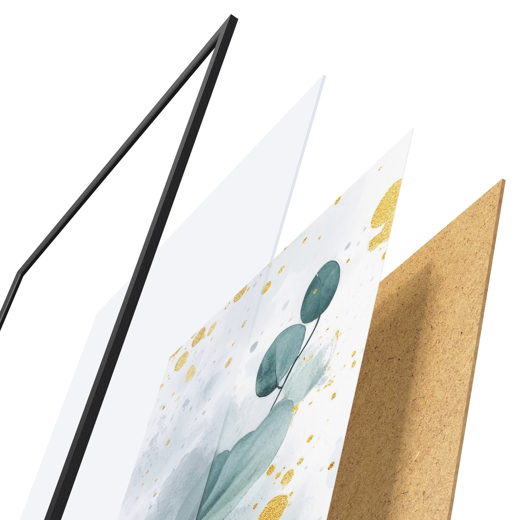 Le poster se compose d'un cadre, d'un plexiglas, d'une image imprimée et d'un support en aggloméré. Le poster peut être immédiatement accroché au mur grâce aux fixations au dos.