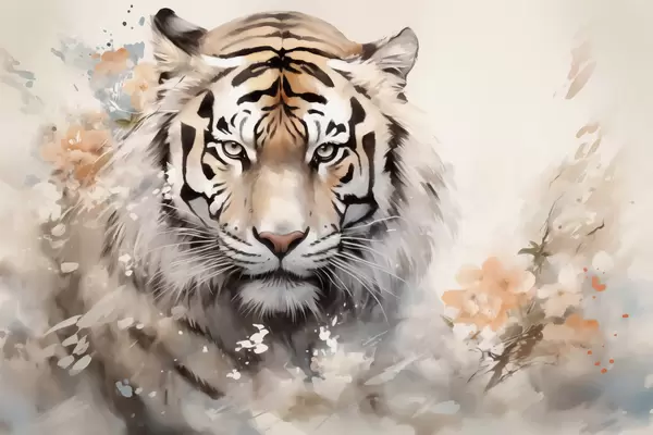 Affiche Portrait abstrait d'un tigre parmi les taches f42421