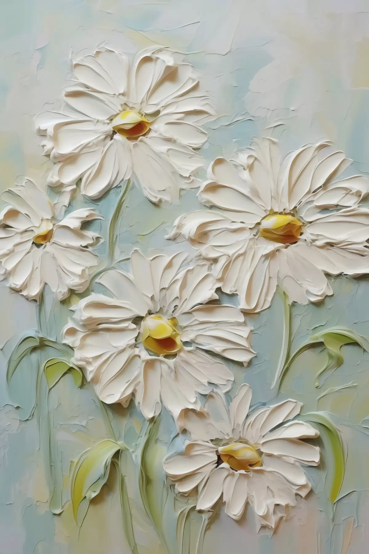 Affiche Marguerites blanches imitant des traits de peinture f42422