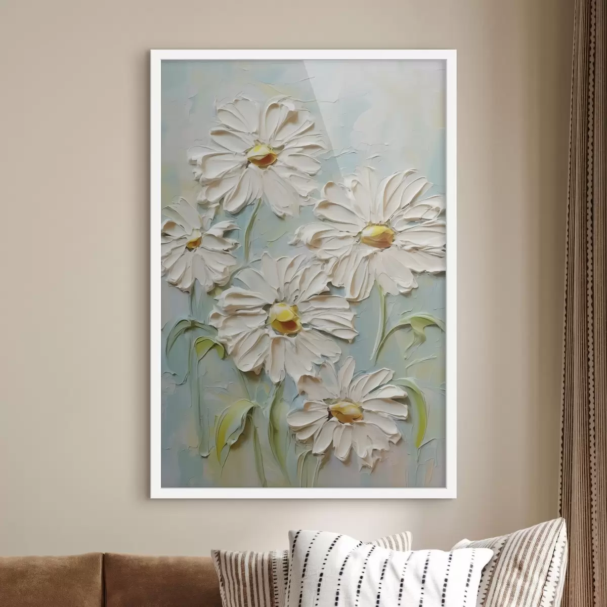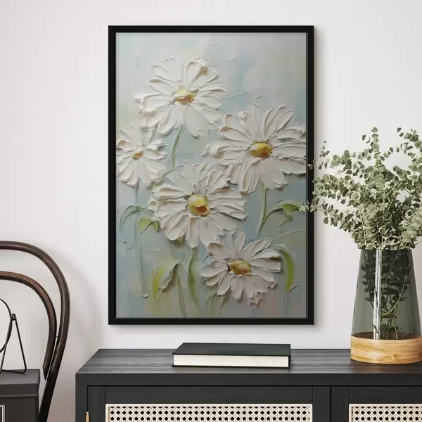 Affiche Marguerites blanches imitant des traits de peinture Non f42422
