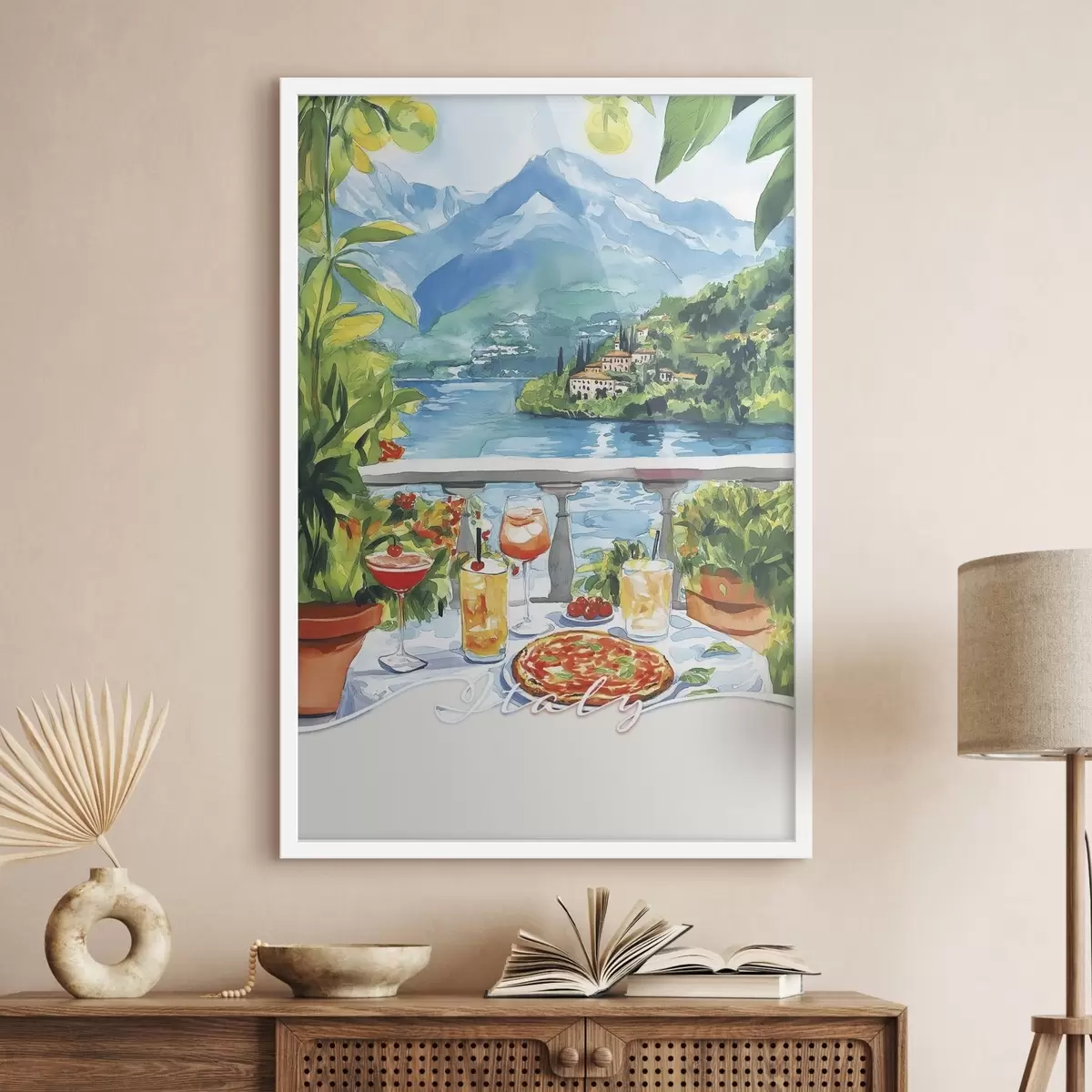 Affiche Italie esthétique, style aquarelle, pizza et cocktails, montagnes Non f42434