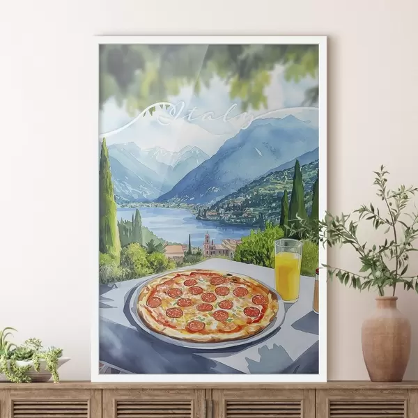 Affiche Aquarelle, Italie, pizza, vieille ville, paysage de montagne f42435