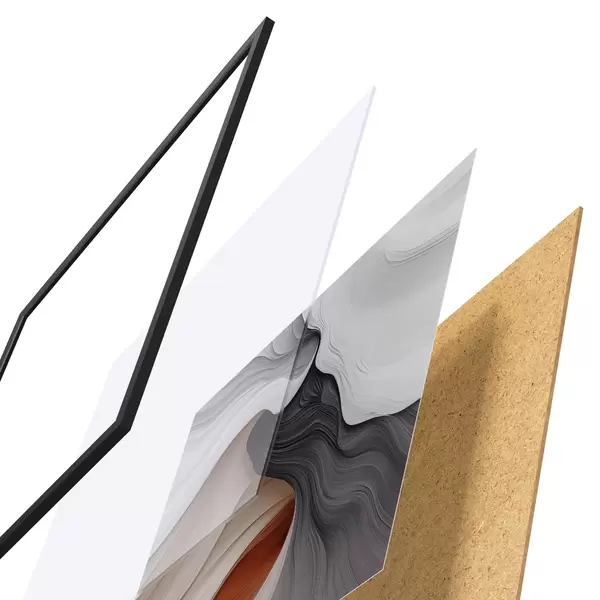 Le poster se compose d'un cadre, d'un plexiglas, d'une image imprimée et d'un support en aggloméré. Le poster peut être immédiatement accroché au mur grâce aux fixations au dos.