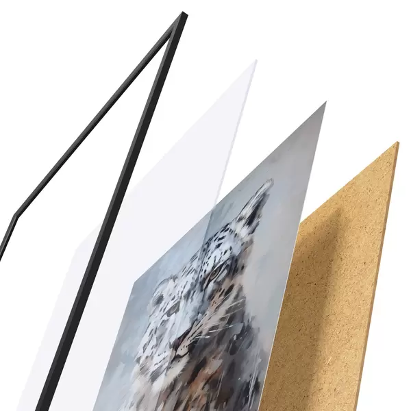 Le poster se compose d'un cadre, d'un plexiglas, d'une image imprimée et d'un support en aggloméré. Le poster peut être immédiatement accroché au mur grâce aux fixations au dos.
