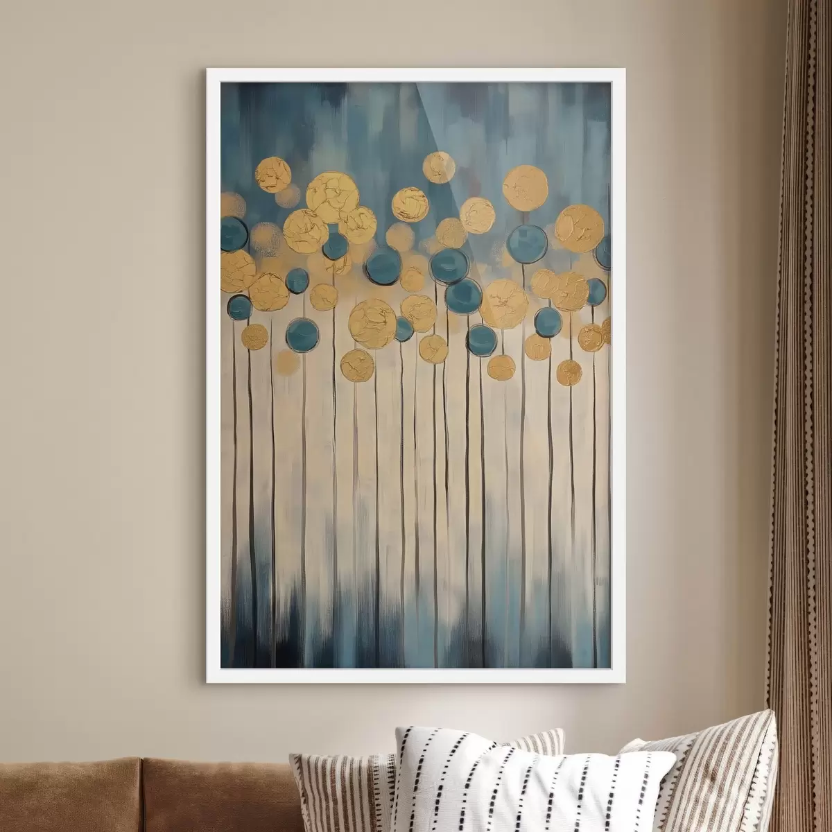 Affiche Abstraction décorative avec des éléments ronds sur fond bleu et beige Non f42476