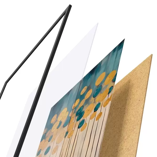 Le poster se compose d'un cadre, d'un plexiglas, d'une image imprimée et d'un support en aggloméré. Le poster peut être immédiatement accroché au mur grâce aux fixations au dos.